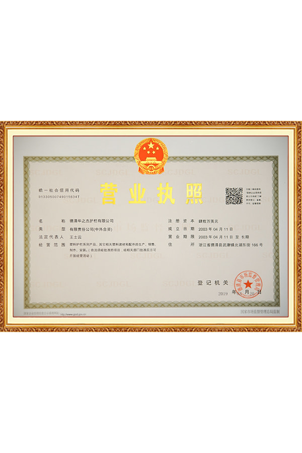 Deqing Huazhijie Railing & Fencing Co., Ltd., localizado na cidade de Huzhou, perto de Xangai, é um fabricante líder de produtos externos baseados em PVC desde o seu estabelecimento em 2003. A empresa é especializada em pesquisa, desenvolvimento, produção, venda e serviço de PVC, pisos de PVC e PVC Garden ARR. Ao longo dos anos, a Huazhijie ganhou reconhecimento por seu compromisso com a qualidade, a satisfação do cliente e o design inovador. A empresa investiu em equipamentos avançados de fabricação, incluindo linhas de extrusão, e possui certificações como CE, ROHS e UL94, garantindo os mais altos padrões do setor.