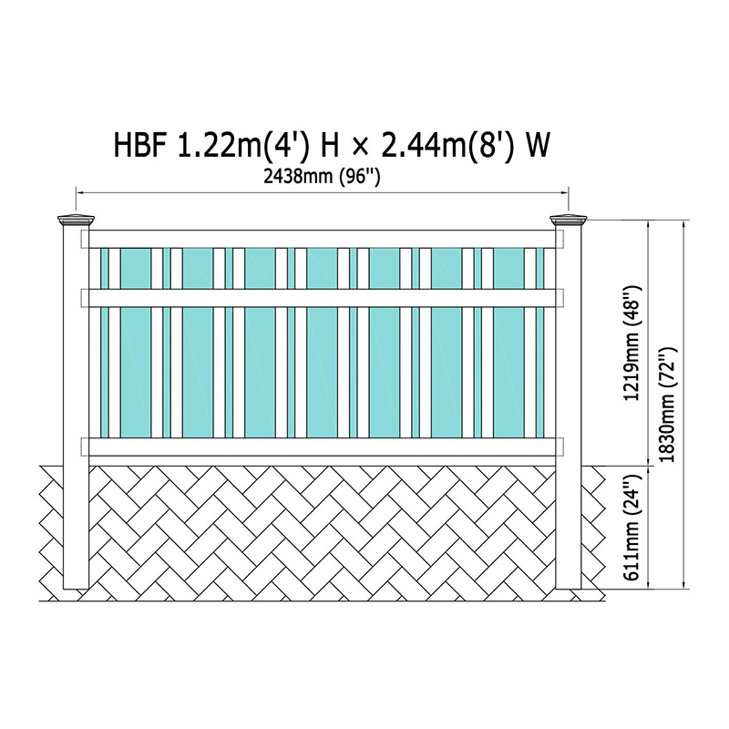 A cerca apresenta um design resistente com um trilho inferior de 2 "x3-1/2" e trilhos superior e médio pré-localizados para maior estabilidade. Uma inserção de alumínio no trilho inferior fornece força comercial, garantindo a durabilidade.