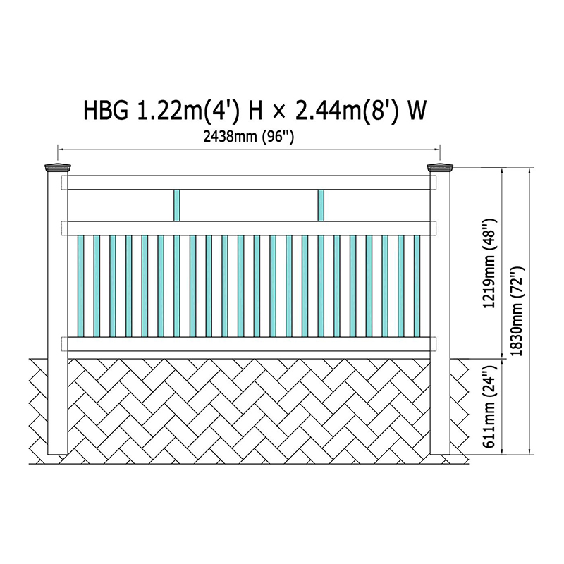 O design é concluído com as atraentes tampas de pós, incluindo o boné da Nova Inglaterra, o boné plano e o boné gótico, permitindo que você personalize ainda mais a aparência da sua cerca. O trilho inferior mede 2 "x 3-1/2" e vem pré-localizado a 94 polegadas para facilitar a montagem, enquanto os trilhos superior e médio também são pré-localizados para instalação sem esforço, medindo 2 "x 3-1/2" a 94 polegadas cada.