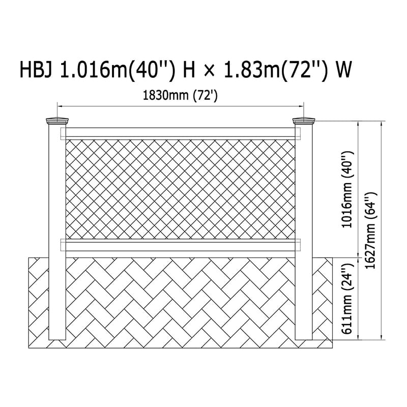 Nossa cerca está disponível em uma altura padrão de 40 polegadas, com opções para alturas diferentes para atender às suas necessidades. Cada seção possui uma largura padrão de 72 polegadas, com larguras personalizáveis disponíveis, garantindo um ajuste perfeito para qualquer área. As postagens robustas estão disponíveis em tamanhos de 4 "x 4" ou 5 "x 5", pré-rotulados para facilitar a instalação como configurações de linha, extremidade, canto ou 3 vias.