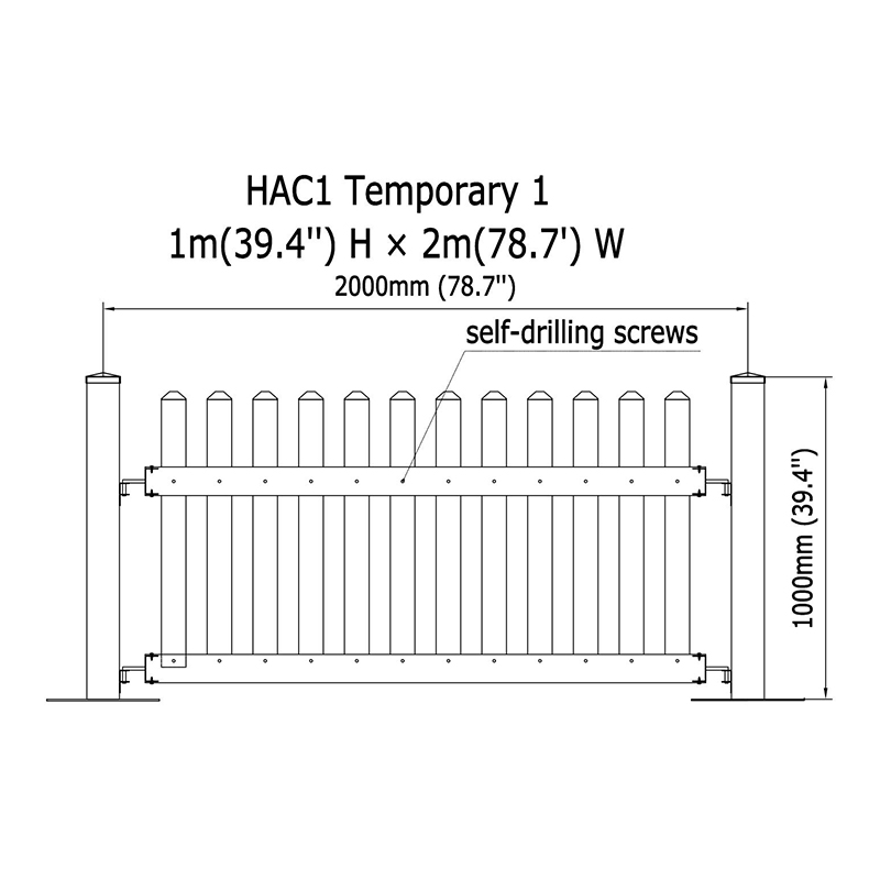 Construídos com uma altura padrão de 39 polegadas e uma largura de 78 polegadas, nossos painéis de cerca são versáteis o suficiente para acomodar várias necessidades espaciais. Cada painel mede 68 ”x 32” e inclui dois ganchos para facilitar a instalação e a estabilidade. Com um post de 4 "x 4" x 39 ", pré-montado com uma placa de poste de aço robusta, este sistema de cerca é projetado para resistência e durabilidade, tornando-a uma escolha confiável para configurações temporárias.